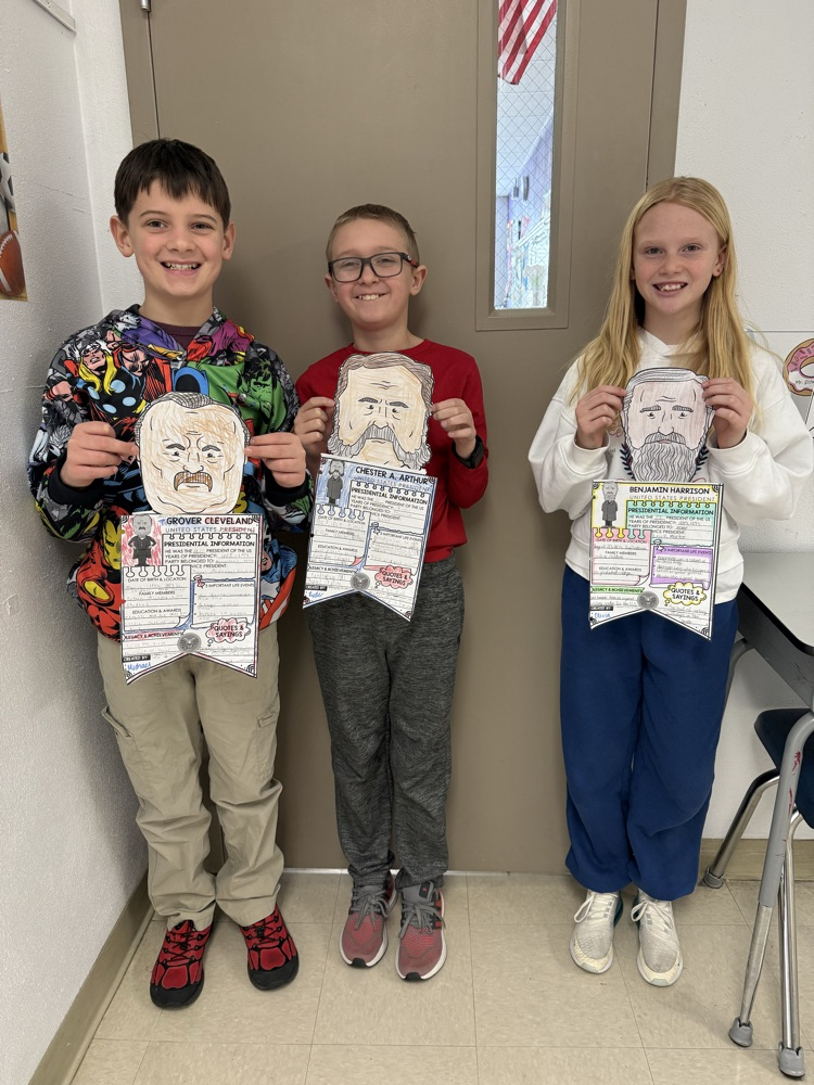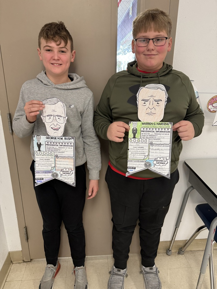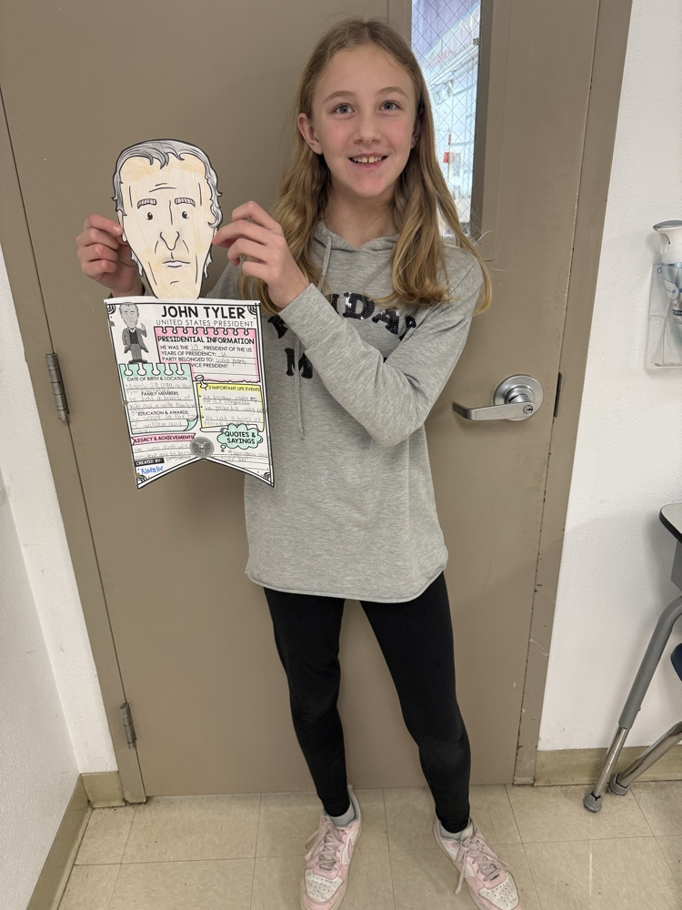 In 5th grade, students have been learning about the Executive Branch and US Presidents in social studies. In ELA, they are writing an essay about one President they have researched and studied. All the students did a great job making a pennant to hang on their locker to celebrate Presidents' Day this month!